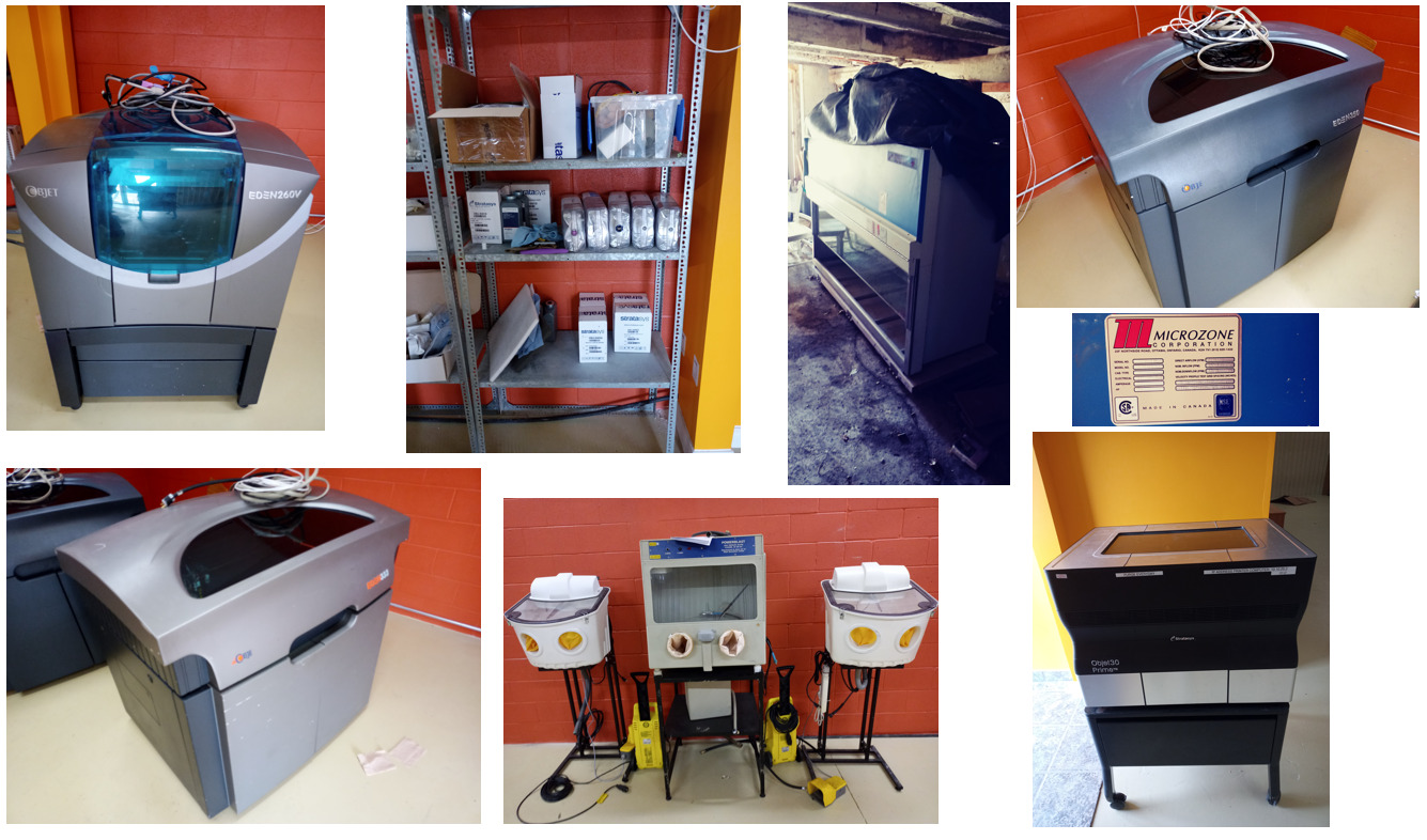 Stratasys printers, wash stations, hoods, inks, etc.